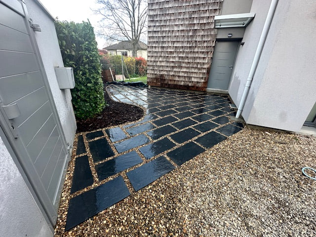 La Dalle Ardoise Noir 60/30 est un choix parfait pour ajouter une touche sophistiquée à vos aménagements extérieurs. Avec sa couleur noire profonde et son design élégant, elle s’intègre harmonieusement dans les jardins, terrasses et allées. Chaque dalle est fabriquée à partir d'ardoise naturelle, offrant à la fois une texture unique et une grande résistance aux intempéries. De dimensions 60x30 cm, elle est facile à poser et peut être utilisée pour créer des revêtements durables, modernes et raffinés. La Dalle Ardoise Noir 60/30 est idéale pour apporter de la structure et de la profondeur à votre espace extérieur, tout en restant discrète et intemporelle. Elle s'adapte parfaitement aux styles contemporains, classiques ou zen, et nécessite peu d'entretien pour conserver son éclat au fil du temps.